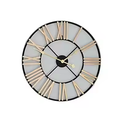 Azora Industries Metal Wall Clock with Art Deco Design Roman Letter Motive Functional Beauty Quartz Style