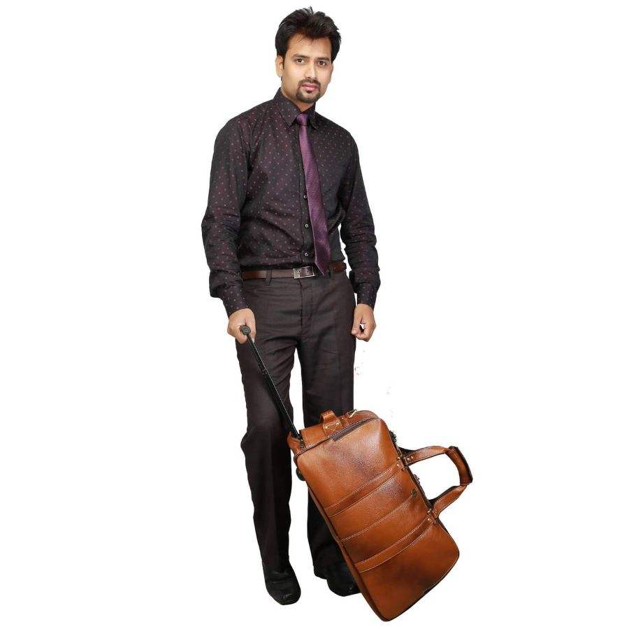 B S International Genuine Leather Laptop Messenger Bag-Classic Fashionable Eco-Friendly Lightweight Waterproof Shockproof Large