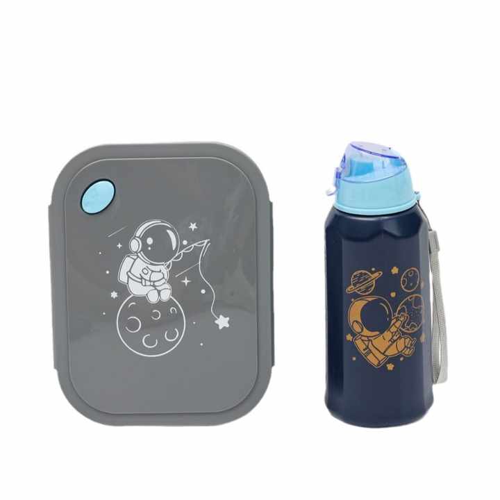 B192 Plastic Lunch Box and Water Bottle Set for Children, Cute School Lunch Kit BPA Free Food Container Combo for Kids