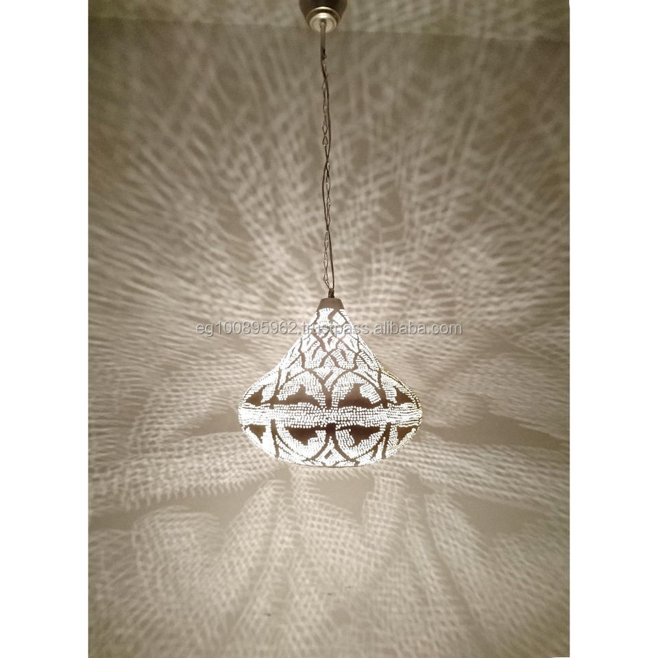 B255 Contemporary Moroccan Style Silver Plated Steel Chandelier Egyptian Oriental Filigrain Pendant Lampshade Lighting