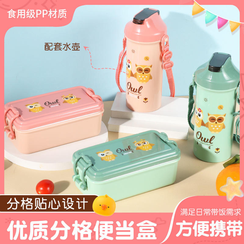 B260 Bento Box and Water Bottle Set Cute Owl Design Lunch Box with Utensils, Leakproof BPA Free Plastic Food Container Lunch Box