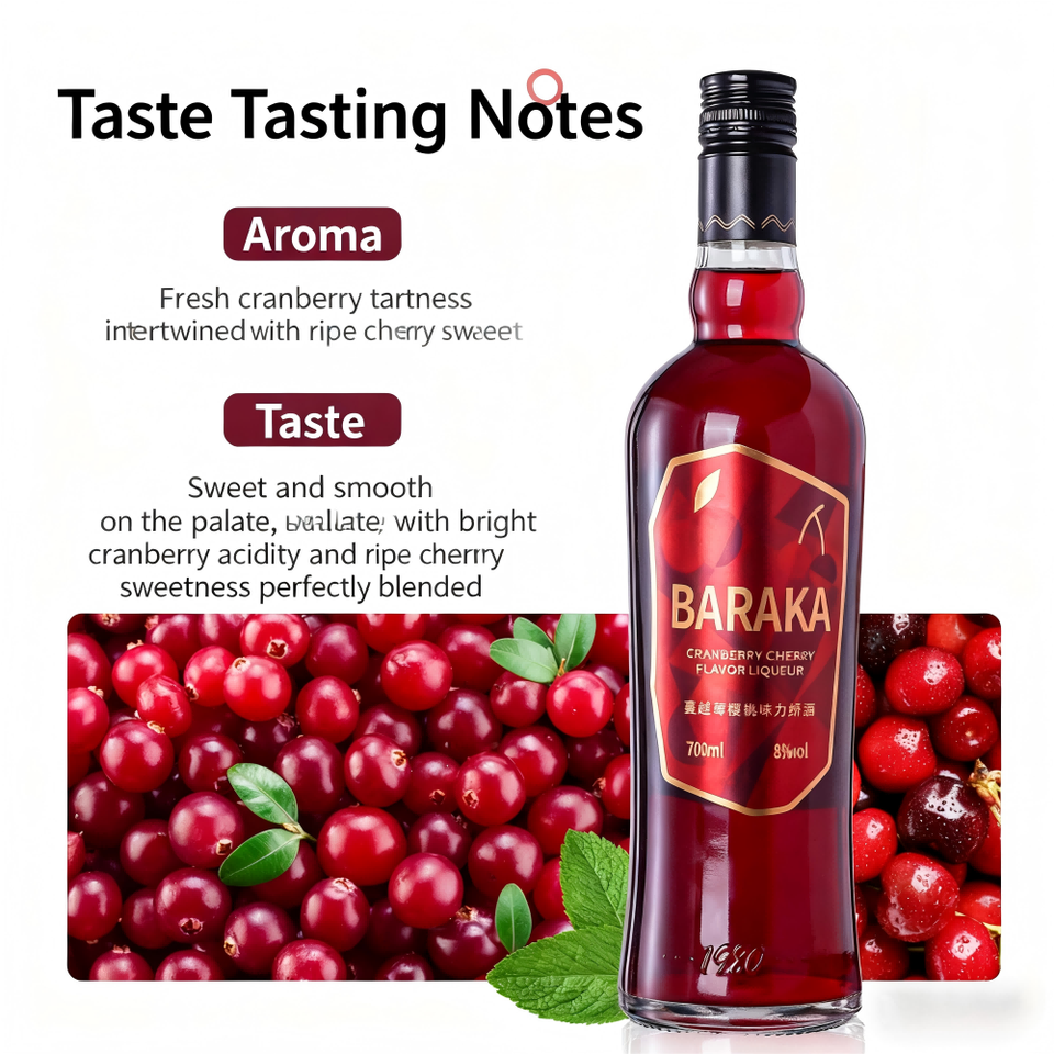 B2B Bulk Cranberry Cherry Liqueur 8% ABV 700ML 12 Bottles ODM Custom MOQ50 China Factory Caf Supermarket Bar