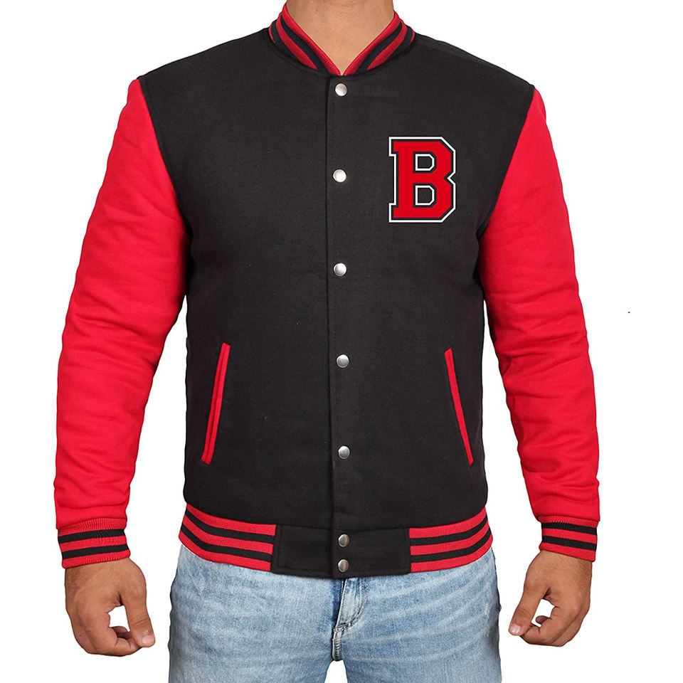 B2B Custom Men Red Black Motorcycle Hip Hop Vintage Jacket Front Logo Wholesale Team College Uniform Fleece Manufacturer Coat