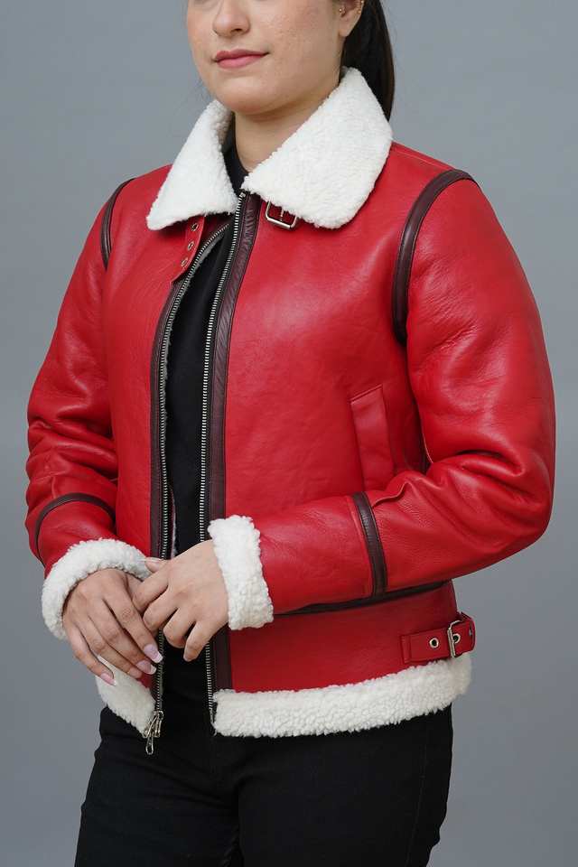 B3 Bomber Leather Shearling Fur Jacket for Men-Waterproof Windproof Reversible Winter Motorbike Fashion