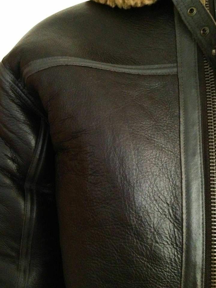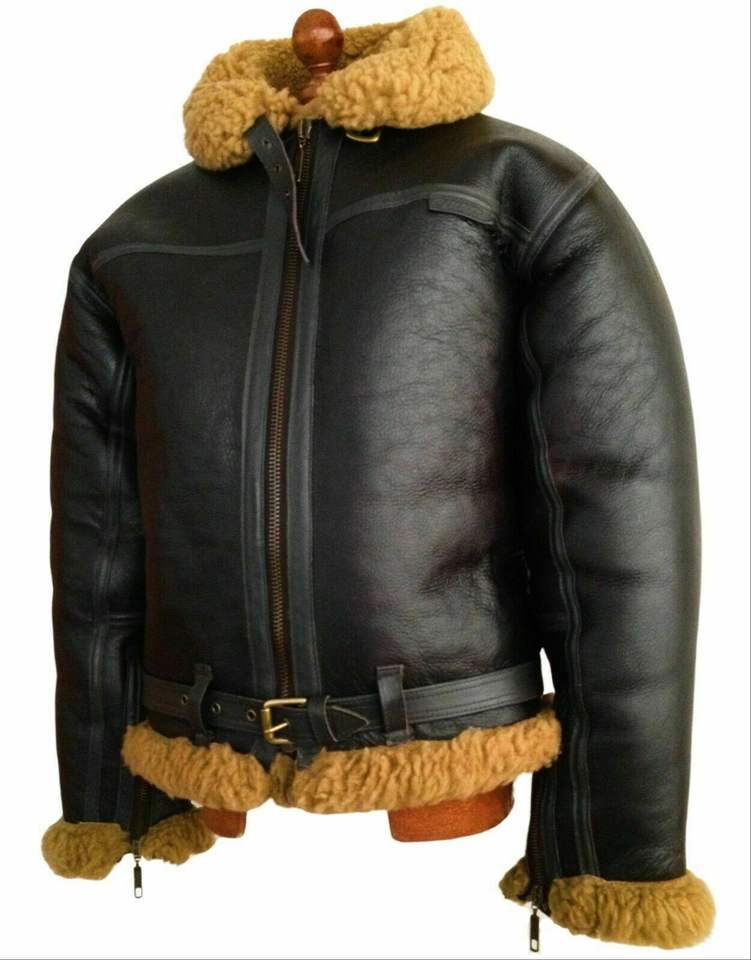 B3 Bomber Mens RAF Aviator Black Vintage Fur Shearling Leather Jacket