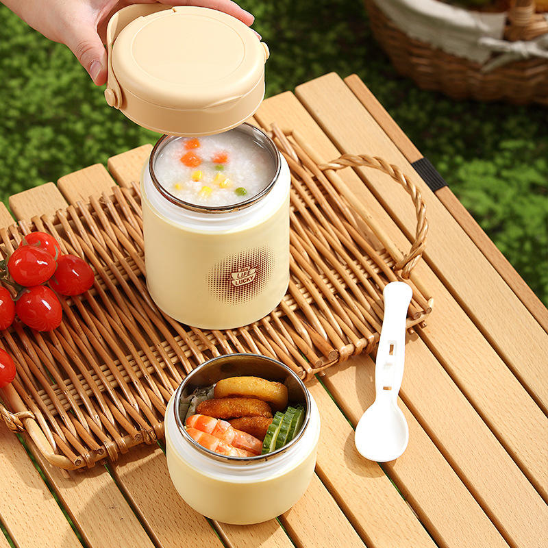 B58 Single Tier Thermal Food Jar with Handle Leakproof Bento Style Portable Meal Storage Container Cute Foldable Eco-Friendly
