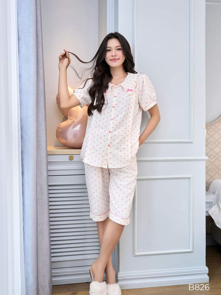 B826 Pink polka dot shorts set for pregnant women soft cool sweat-absorbent linen wholesale price