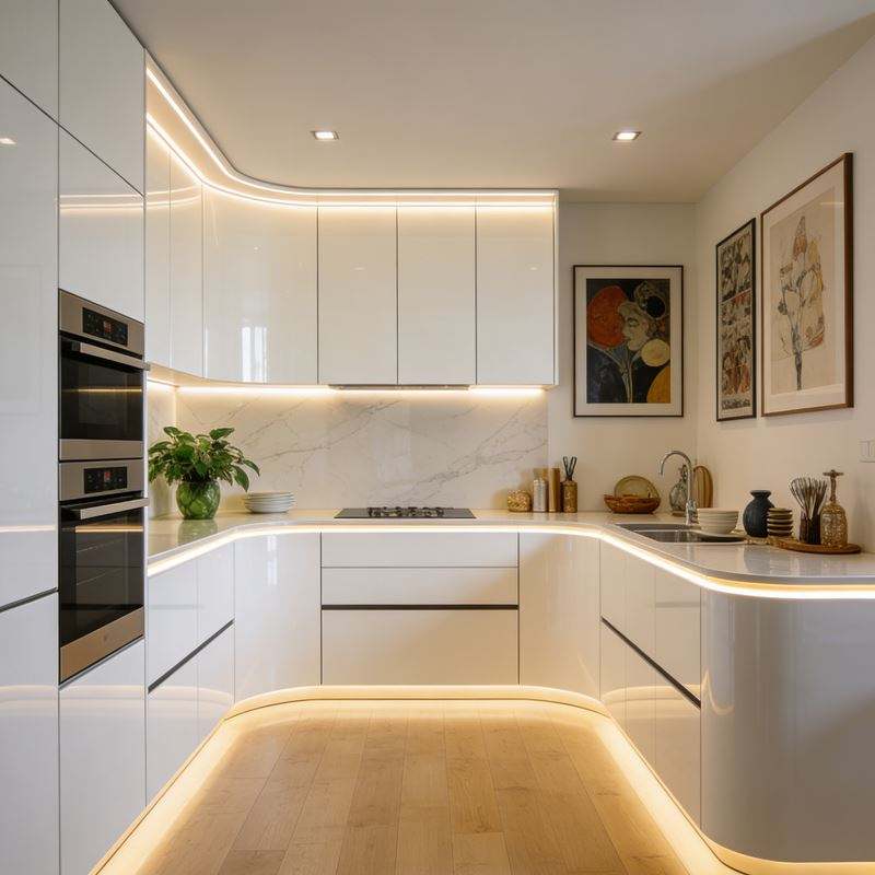Lacquered, White, Laminate, Black, High GlossCabinet Finish