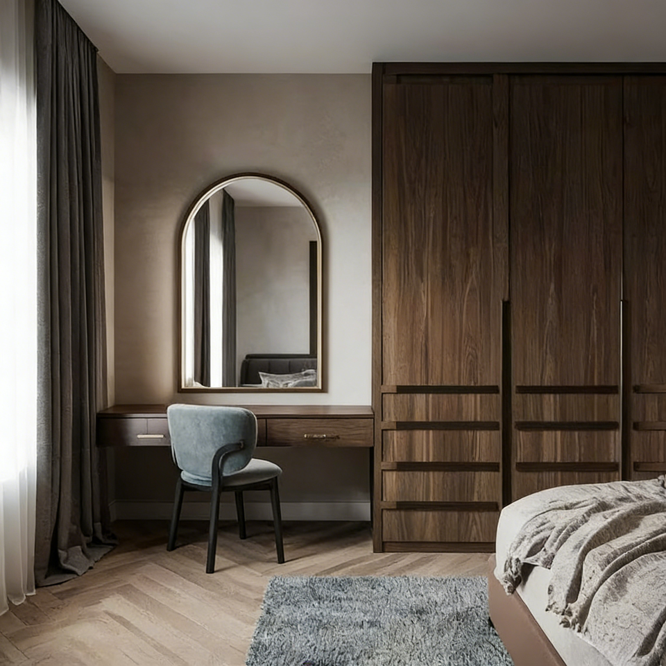 BALOM Customized Solid Wood Wardrobe with Dressing Table, Space-Saving Bedroom Furniture Set, Ardrobe Factory Direct