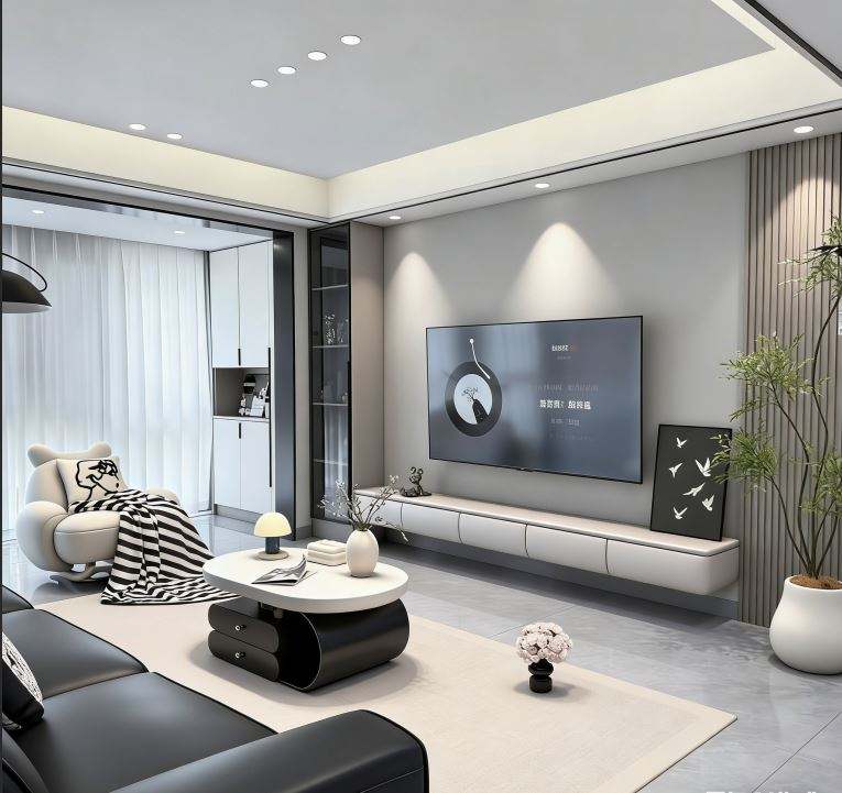 BALOM Customized White and Grey Combined TV Cabinet with Storage Shelves Cabinet Doors Wall Mounted for Living Room Furniture