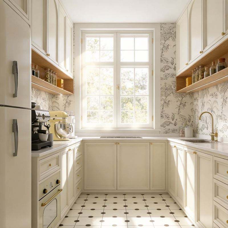 BALOM French Country Style Cream White Kitchen Cabinet with Curved Door Design Modular Storage Kitchen Furniture Set
