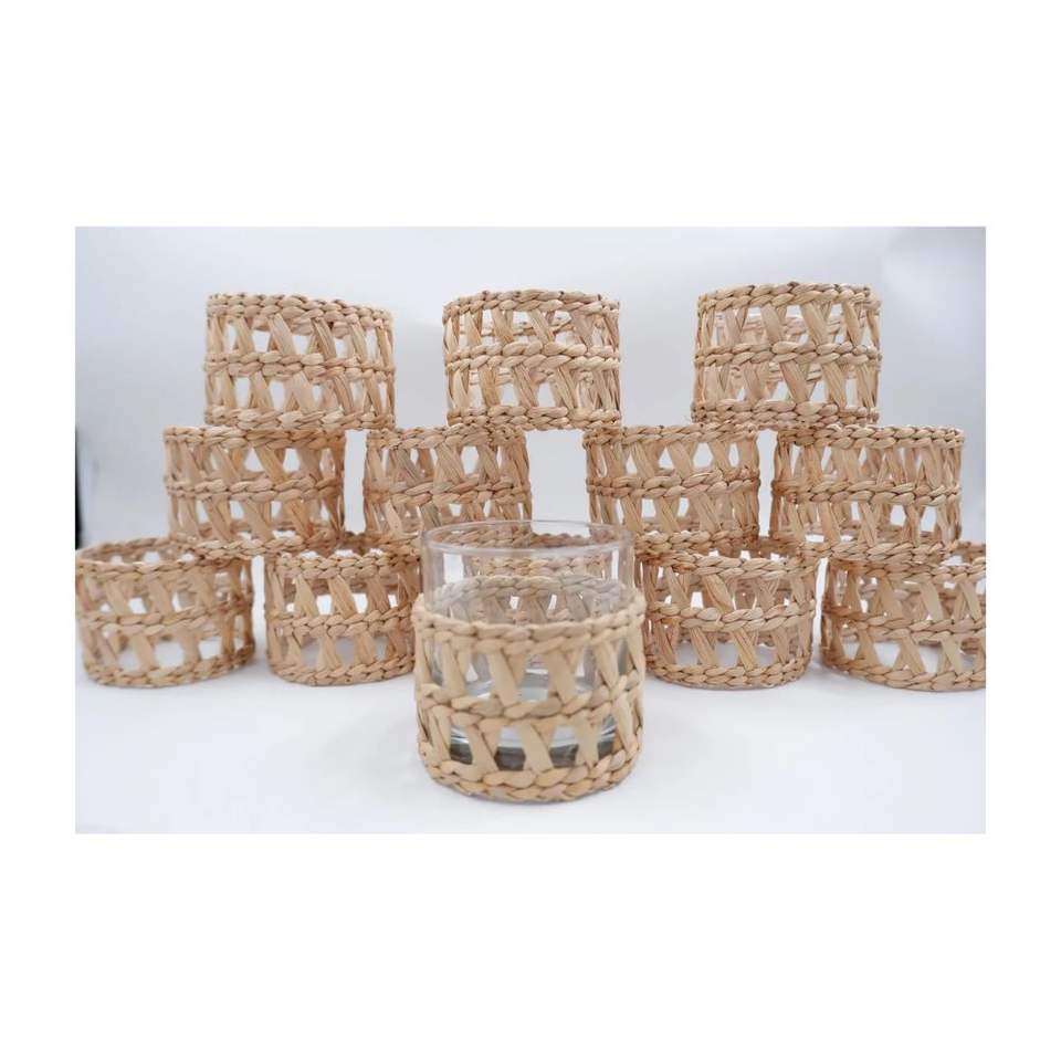 BAMBOO CUP HANDLING MADE of ECO-FRIENDLY SEA GRASS CUP WRAPPED HAND WEAVE WATER HYACINTH CUP HOLDER HOT SALE