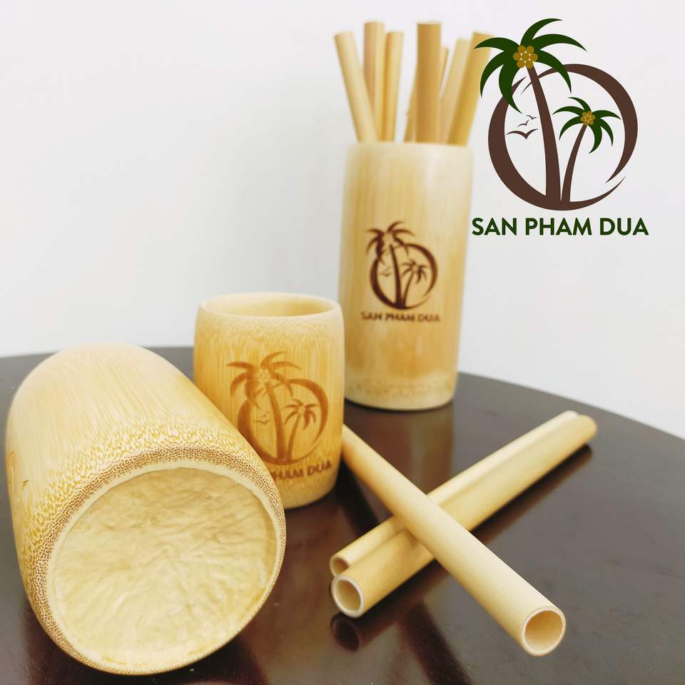 Bamboo Cup with Straws Eco-Friendly Wooden Drinking Ware Handcrafted Gift Includes Coconut Bowl-Free Sample