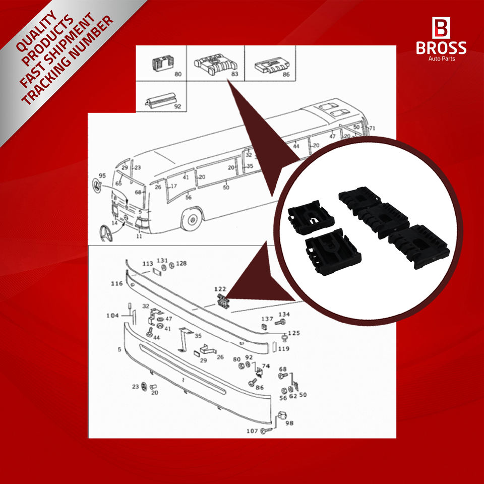 BCF5067 5 Pieces Bus Body Moulding Window Edge Clamp Trim LARGE Clips Covering Below Windshield A0079882378 Bross Auto Parts
