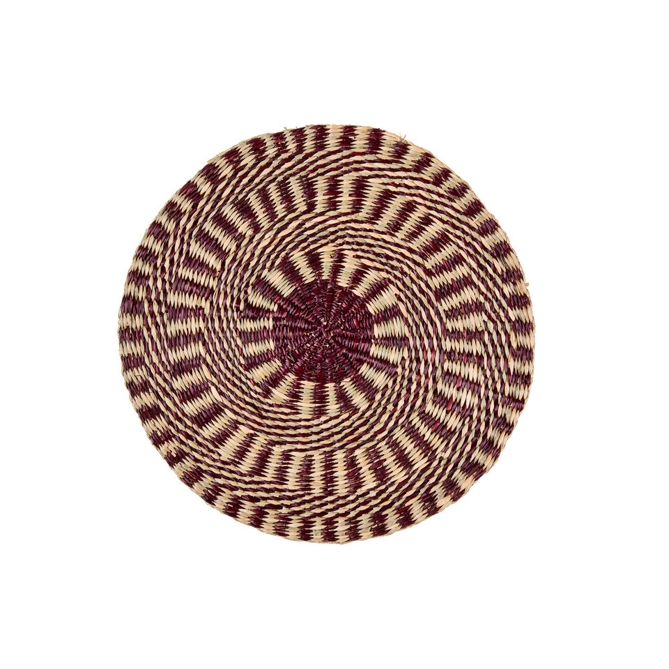 BEIGE AND BURGUNDY SEA RUSH PLATE, DIAM. 39CM H 1CM