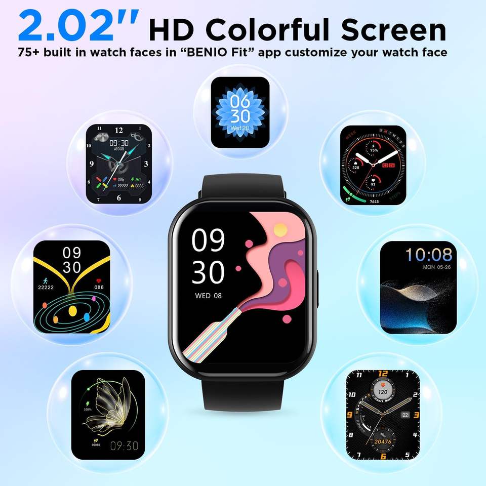BENIO 2.02 Health Fitness Tracker Smart Watch 24/7 Heart Rate SpO2 Sleep Tracker LCD Display Multi-Sport Mode IP68 Waterproof