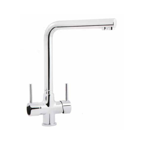 BES 1343 Contemporary 3-Way Mixer Kitchen Faucet Dual Handle Zinc Alloy 2 Outlets Hot Cold Water Plated Brushed for Home Use