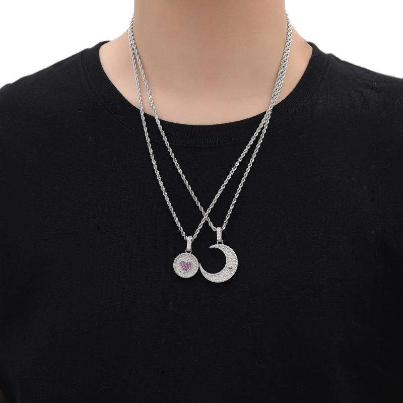 BES Necklace Hip Hop Sun Moon Couple Zircon love Pendant Personality Men Women Chain Diamond Pendant Hip Hop Jewelry