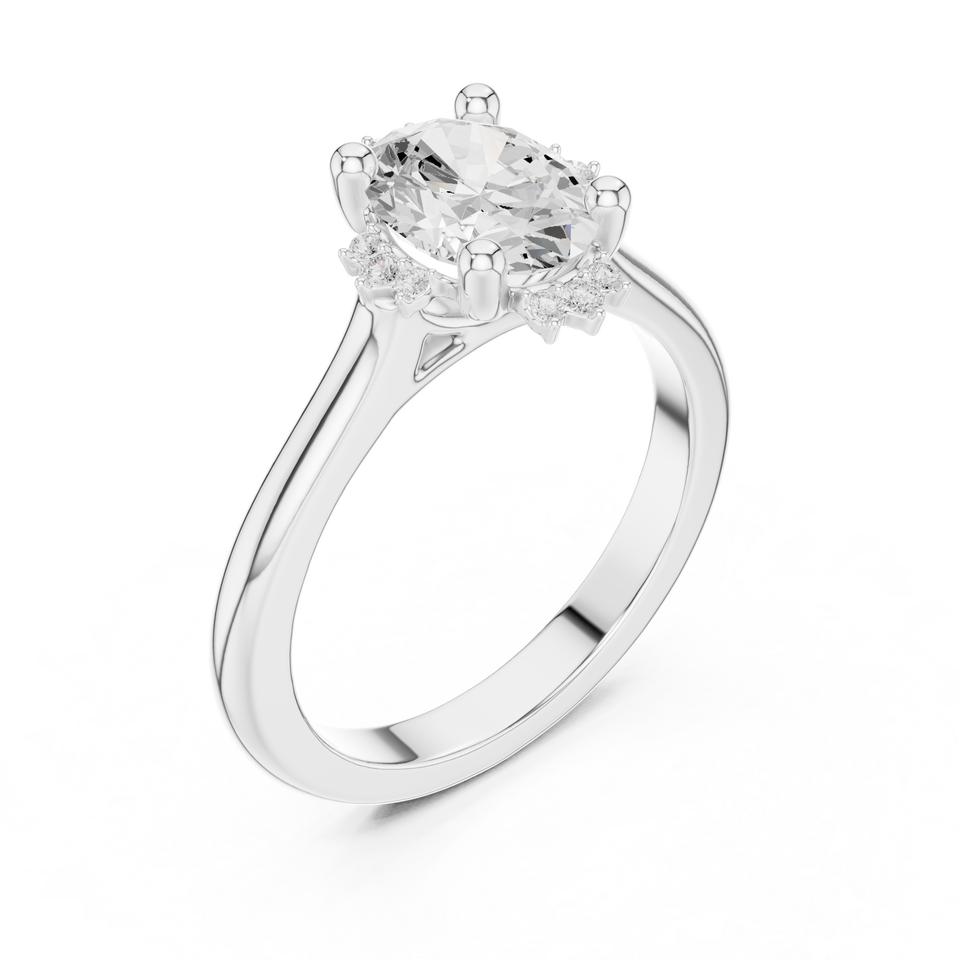 BESPOKE BAUBLES 10k Gold Oval Cut Simulated Diamond Ring for Women Halo Design Engagement Ring in Platinum Plated Setting