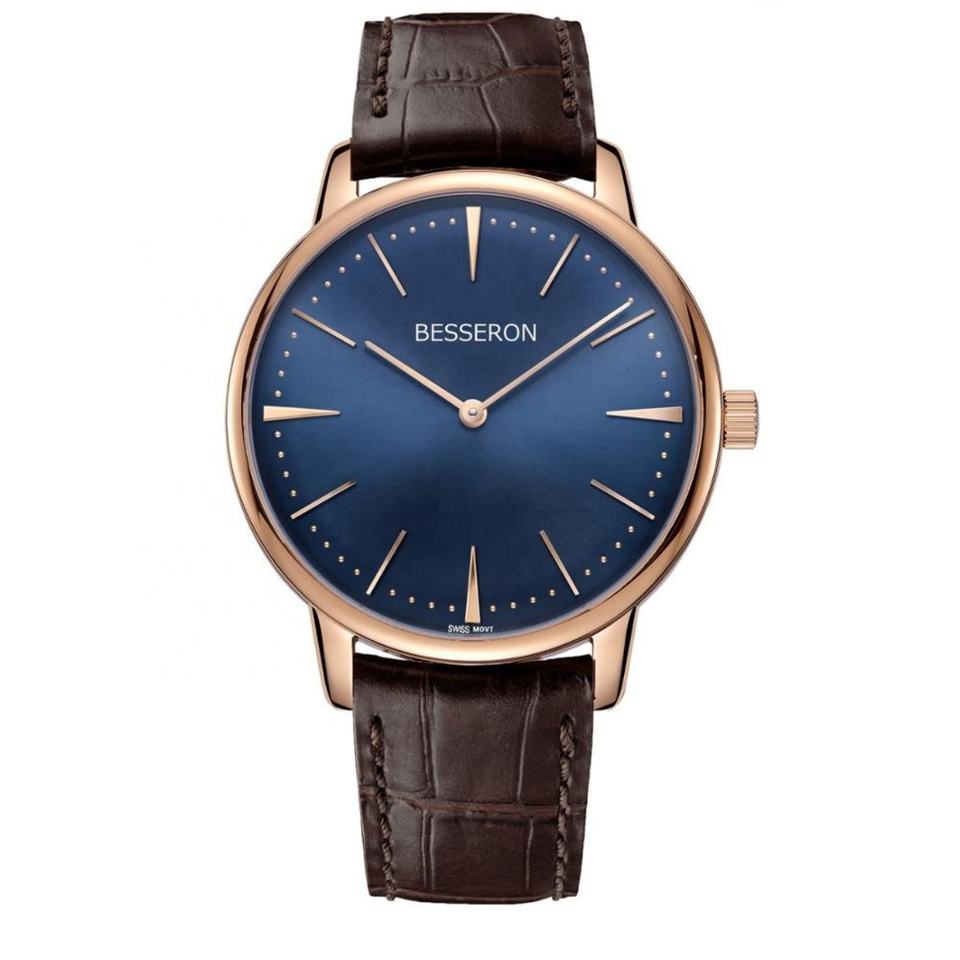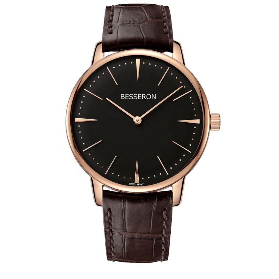 BESSERON 42mm Custom Brand Stainless Steel Quartz Movement Water Resistant alligator Leather Hand Watch for Men