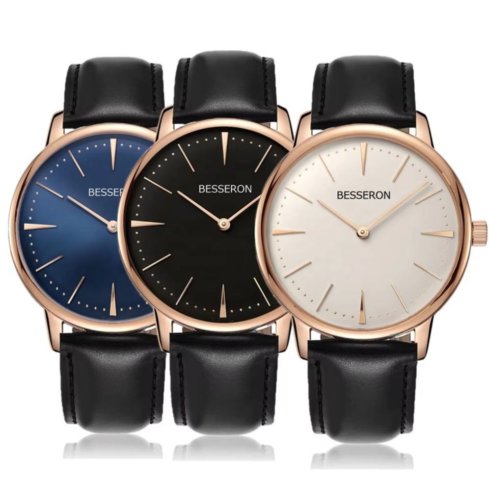 BESSERON Watch 42mm Minimalist Big Brand logo Custom Made Movement Cz Waterproof Rose Gold Stainless Steel Wrist Watch Men