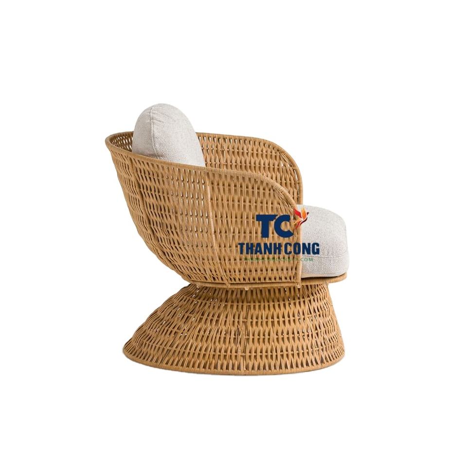 BEST FURNITURE Made in Vietnam New Wooden Rattan Lounge Chair Rattan Armchair and Cotton Cushions