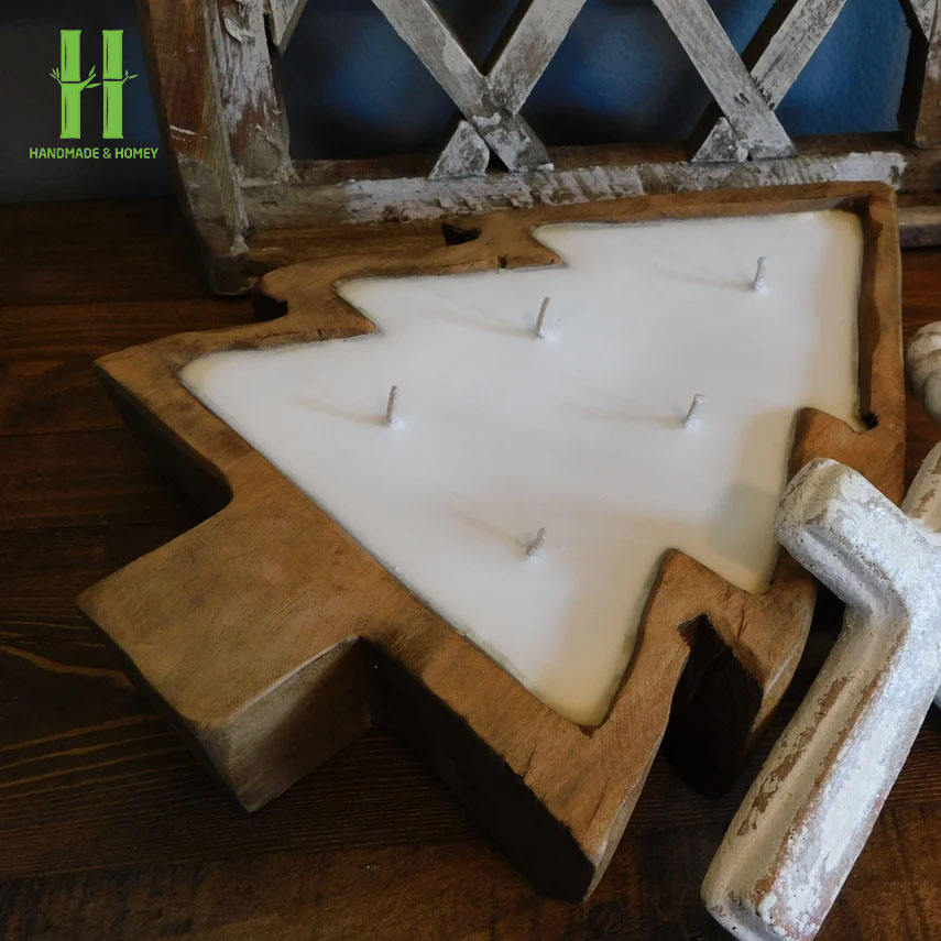 BEST SELLER Cactus Shaped Wooden Dough Bowl for Candle Making OEM Variety of Sizes Handmade From Vietnam Factory