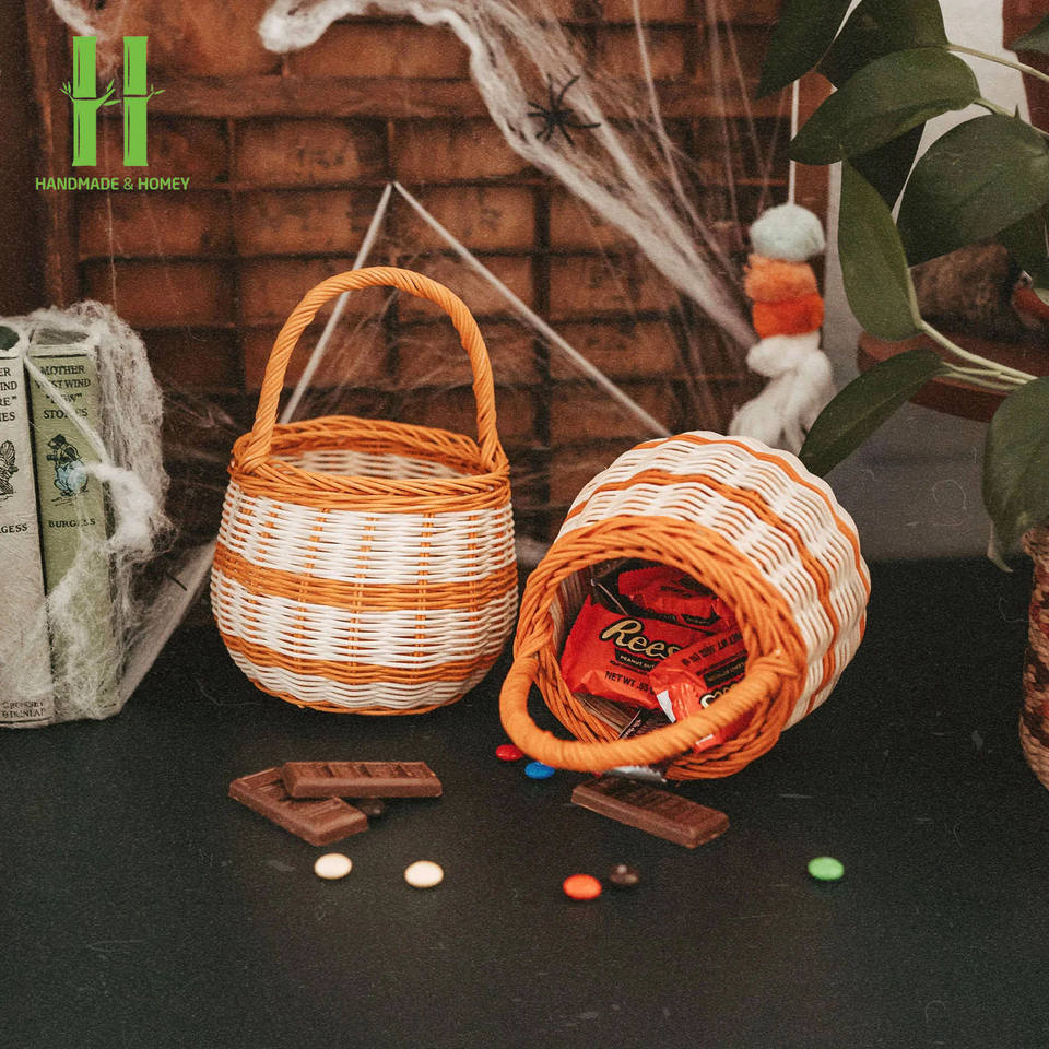 BEST SELLER Eco-friendly Vintage Style Weaving Rattan Picnic Basket Easter Basket Basket With Scalloped Durable with Handles