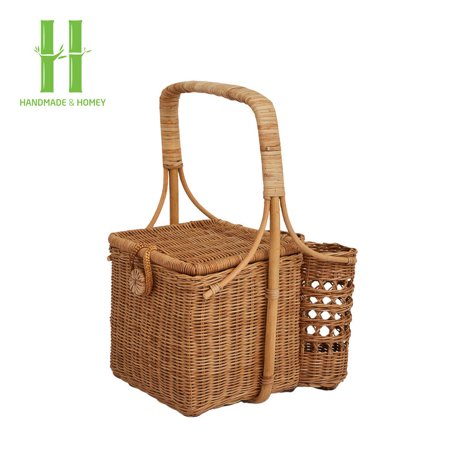 BEST SELLER Excellent Quality Rattan Camping Basket With Bottle Holder Top Quality Cheap Price Picnic Camp Baskets From Vietnam