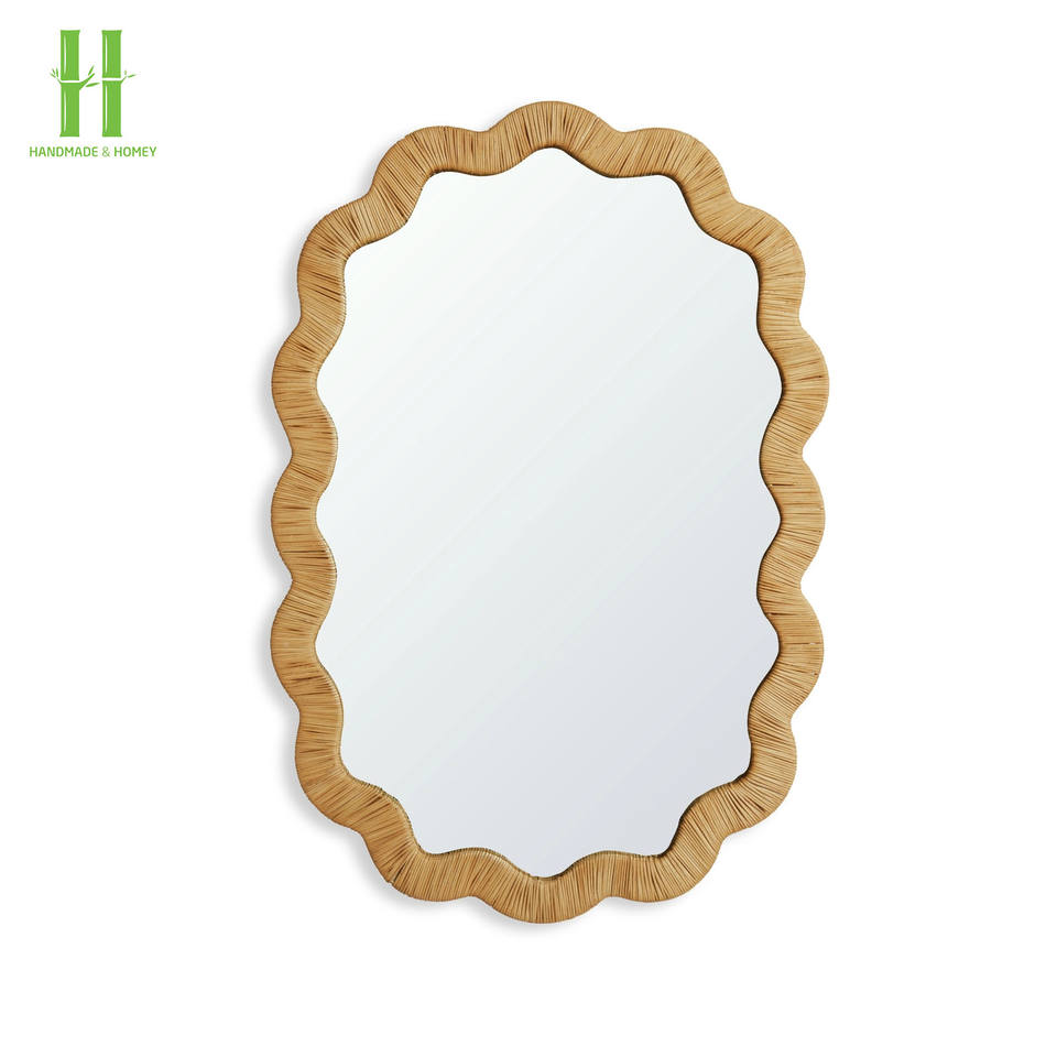 BEST SELLER! Natural Rattan Art Deco Rectangular Handcrafted Woven Wicker Wall Mirror for Any Room