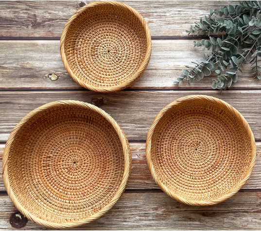 BEST SELLING Multi-sizes Rustic Woven Bowl, Round Rattan Basket, Fruit Basket for Ideal Gifts From Vietnam Manufacturer