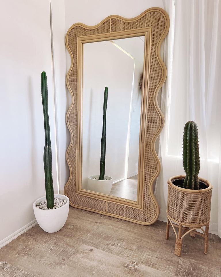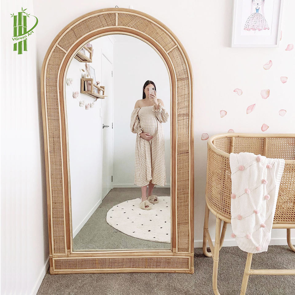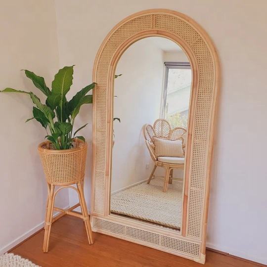BEST SELLING PRODUCT Standing Mirror Stand Frame Bamboo Rattan Floor Mirrors Full Length Full Body Large Long Bedroom Furniture