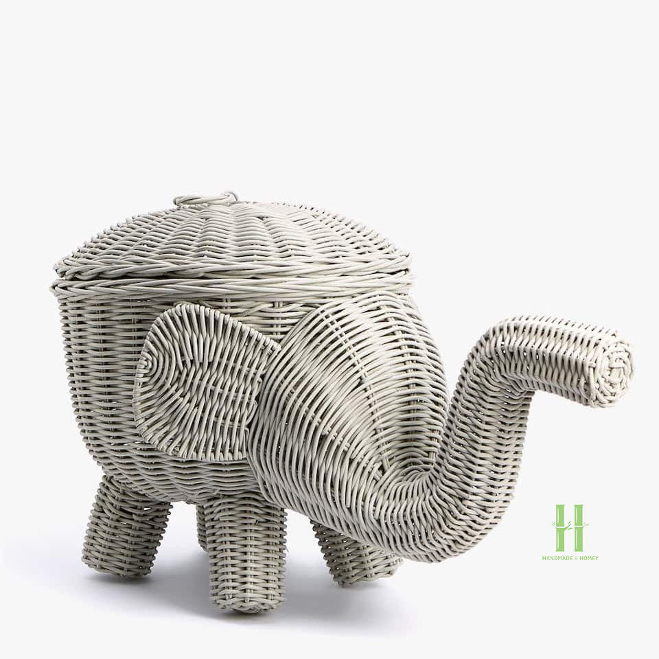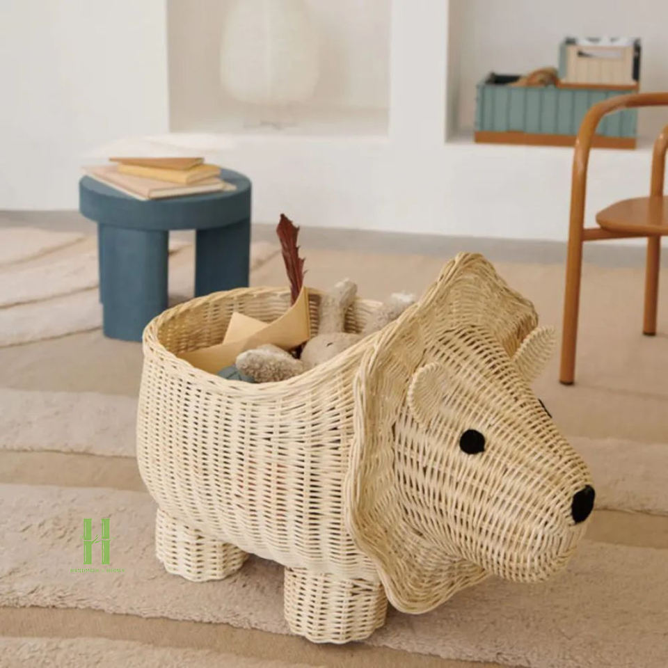 BEST WHOLESALE Natural Rattan Animal Shape Storage Basket Eco-Friendly Handmade Wicker Organizer for Kids Room Decor