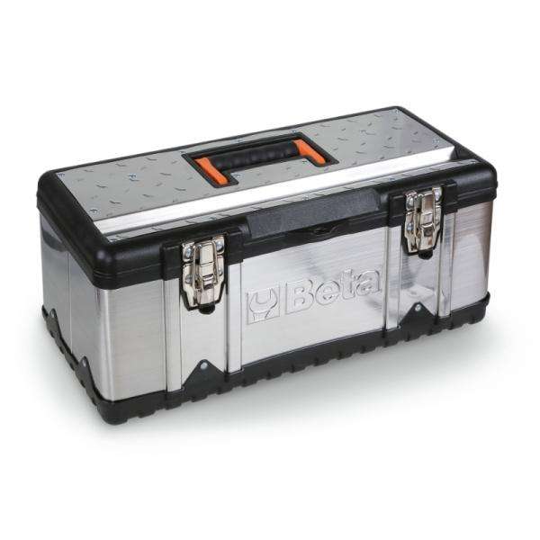 BETA - 021171142 Stainless steel and plastic tool box with removable tote-tray and assortment of 45 tools for universal use