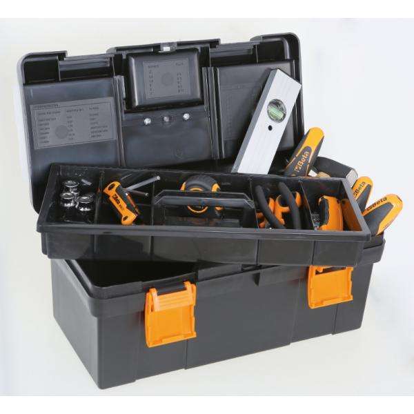 BETA - 021151234 Plastic tool box with removable tote-tray and tool trays and assortment of 49 tools for universal use TOOLBOXES