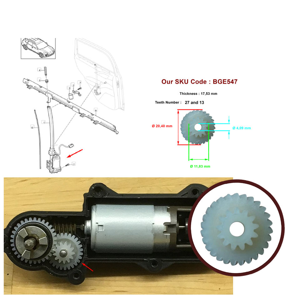 BGE547 Rear Sunshade Sun Shade Curtain Sun Protection Roller Blind Motor Repair Gear Cog 958536318013W4 Teeth Number: 27/13