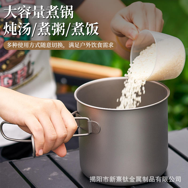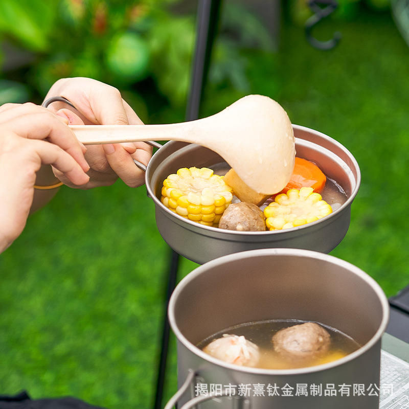 BIFREE Pure Titanium Brushed Outdoor Cookware Set 3-4L Soup Frying Pot Portable Camping Kitchenware