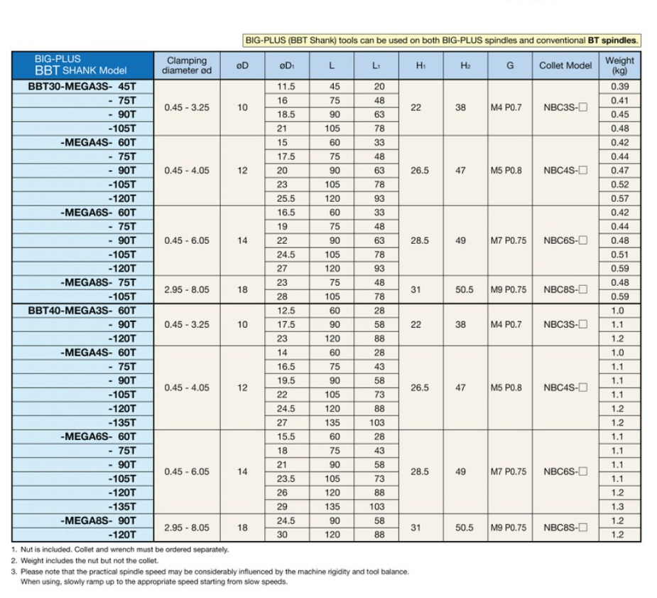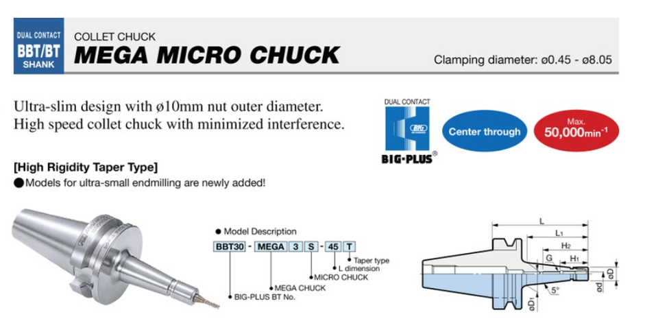 BIG DAISHOWA MEGA MICRO CHUCK BBT shank Ultra-slim design and High-speed collet chuck with minimized interference