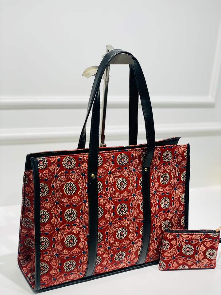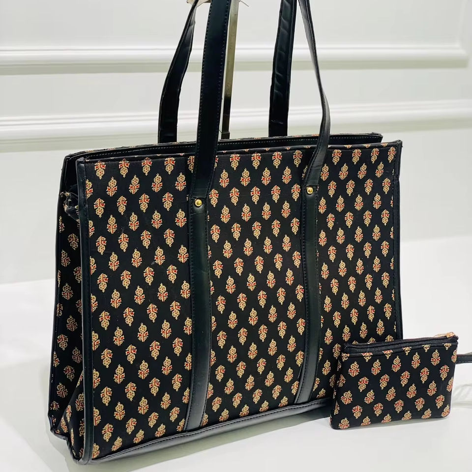 BIG SIZE OFFICIAL Bag with Pouch Double Partition NYLON WATER RESISTANT FABRIC and Cotton Handblock Fabric Used
