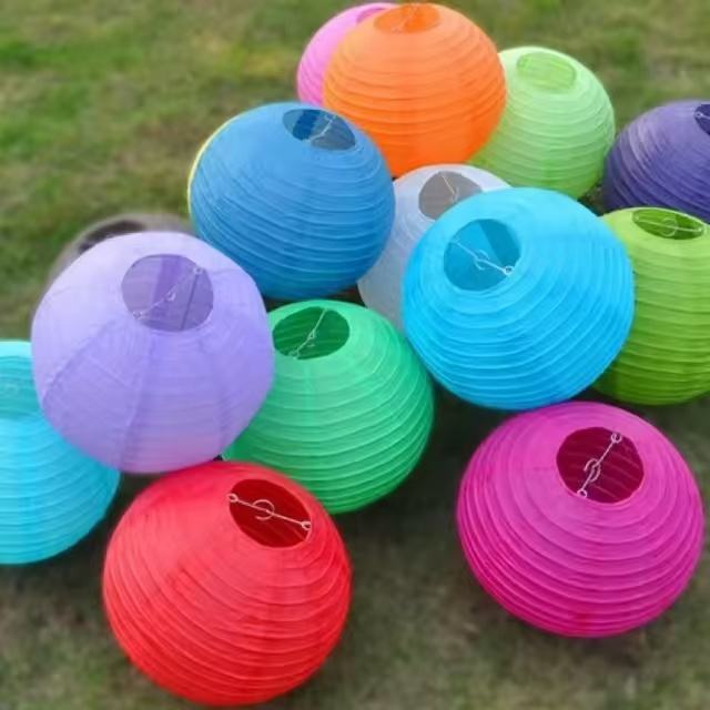 BINLU 12\" & 16\" Colorful Round Paper Lantern Set for Outdoor & Home Decor