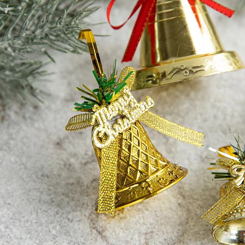 BINLU 6pcs Mini 3-inch Golden Bell Christmas Ornaments Handmade Aluminum Holiday Crafts with Lanyard Customizable Size