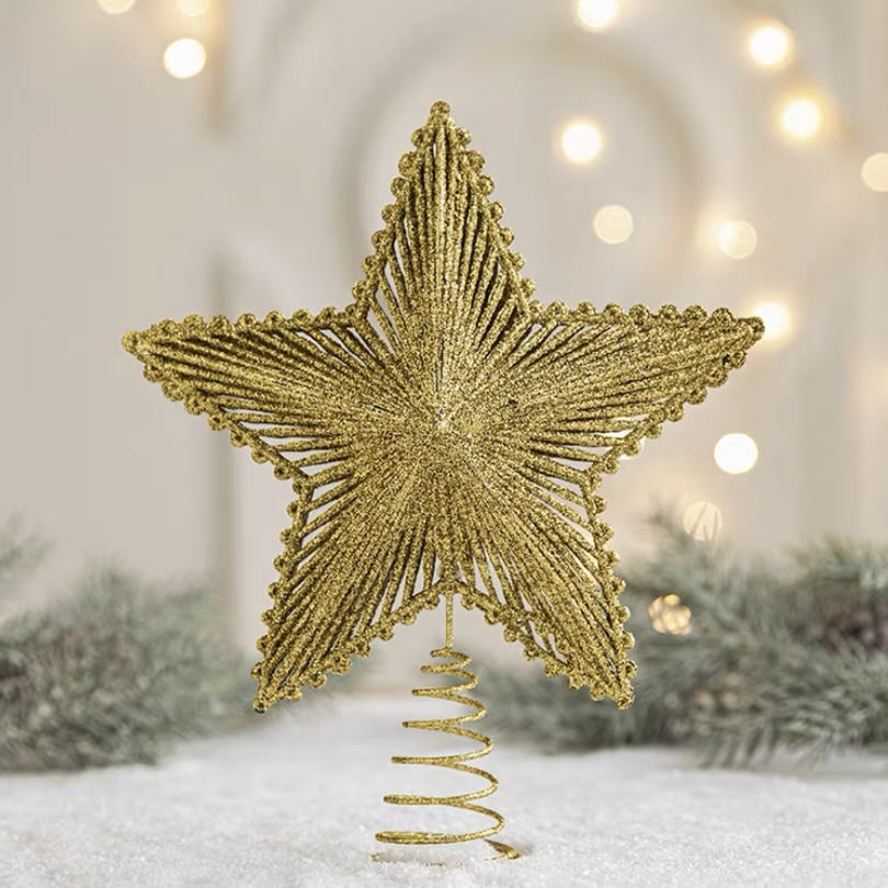 BINLU Luxury Gold Glittered Christmas Top Star Handmade 3D Pendant Tree Topper Customizable Size High Quality