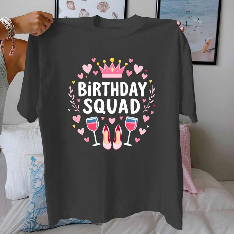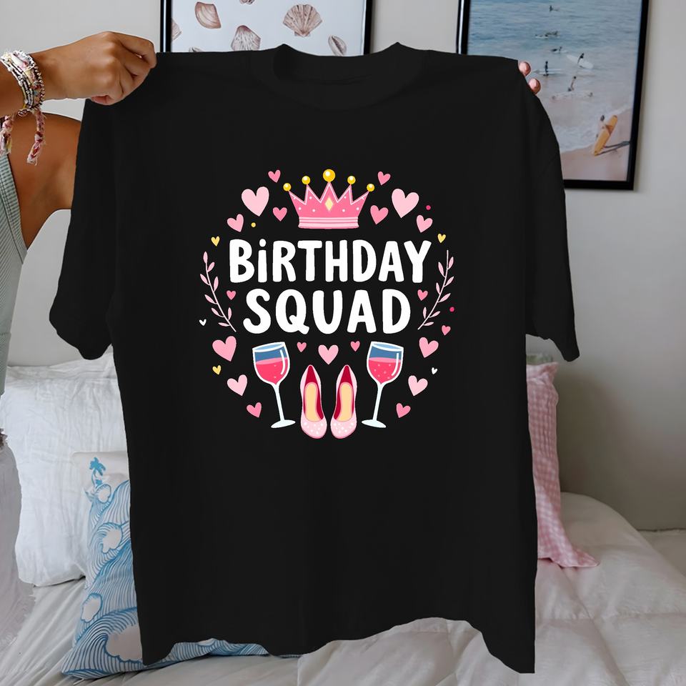 BIRTHDAY SQUAD with pink crown pure cotton women's Tshirt comfort fit