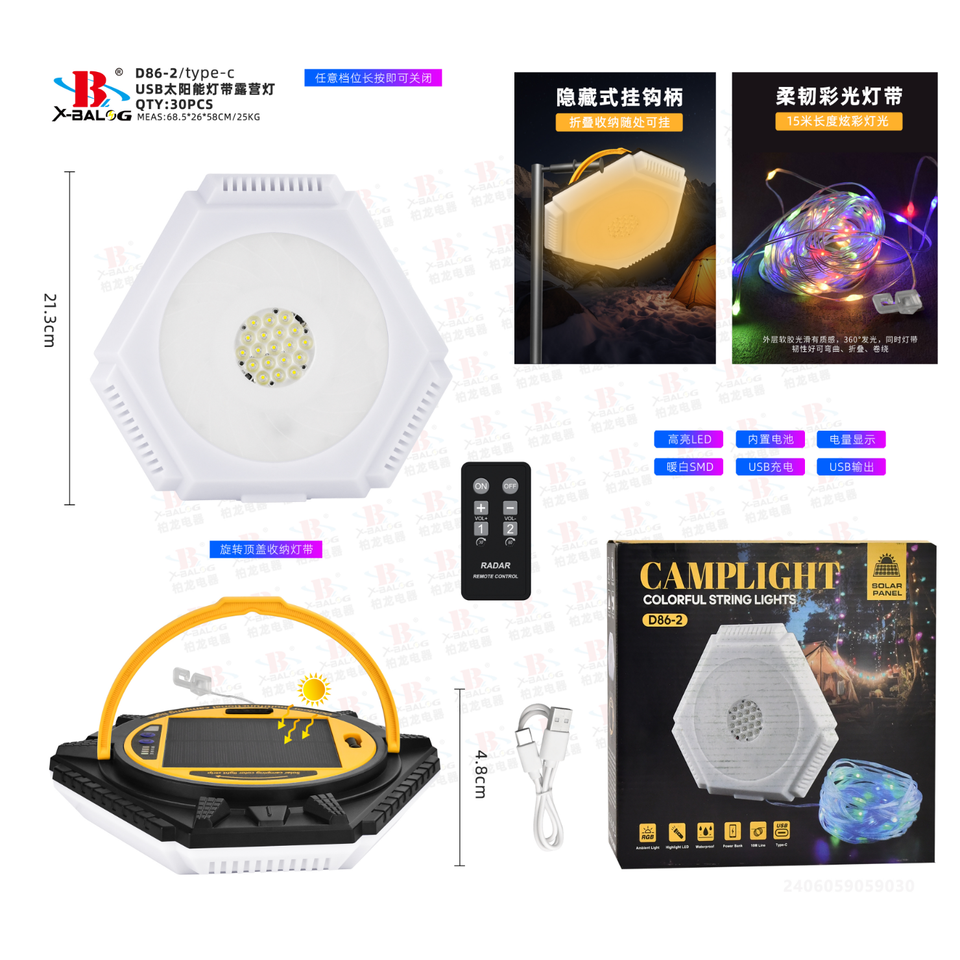 BL-D86-2USB Solar Powered 15M Light String for Camping & Outdoor Use