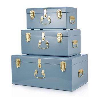 BLACK METAL TRUNK BOXES SET of 3 HOME DECORATIVE STORAGE BOX PARTY DECORATIVE TREASURE CHEST