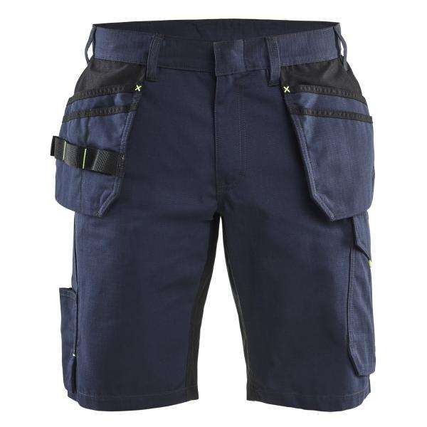 BLAKLADER - 149413308633C52 Service shorts with nailpockets Dark navy blue/Hi-vis yellow - EAN 7330509920718 HI-VIS WORKWEAR