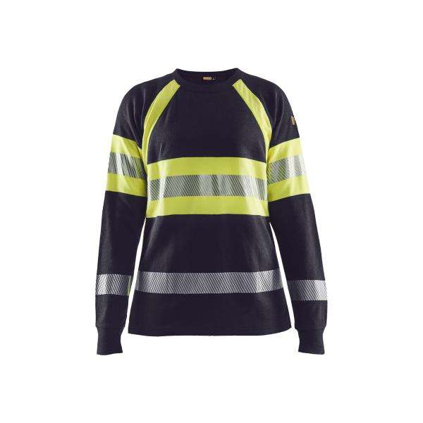 BLAKLADER - 349417618933XS Women's flame resistant t-shirt long sleeve Navy blue/Yellow FLAME RESISTANT WORKWEAR