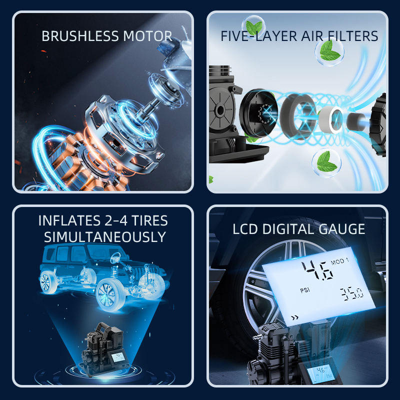 BLDC 12V Quick Compression Large LCD Oil-Free Digital Piston Gonfleur Des Pneus Air Compressor