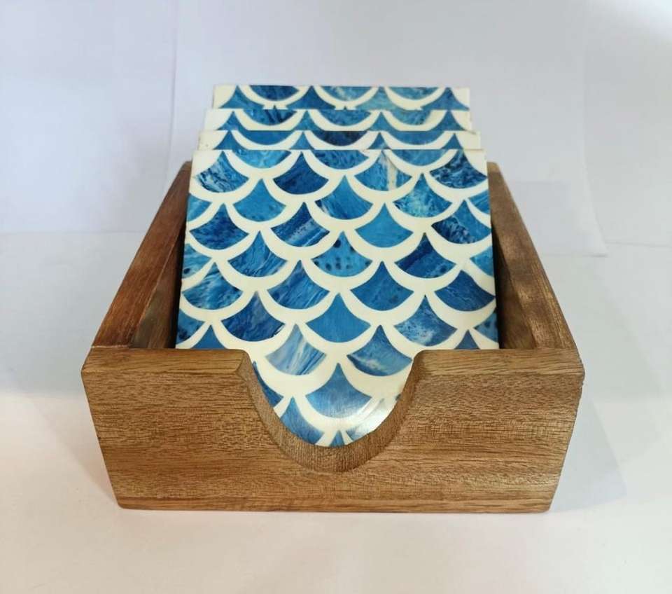 BLEND Quality Epoxy Resin And Wooden Coasters Set of 4 With Holder Decorative Square Round Epoxy Wood Resin Coaster