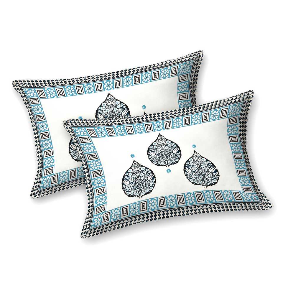 BLOCKS INDIA Handmade Sanganeri Print Cotton Viscose Economy King Size Bedsheet 225 X 270 CM 2 Pillow Covers Fitted Flat Sheet